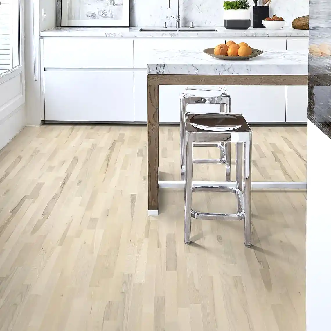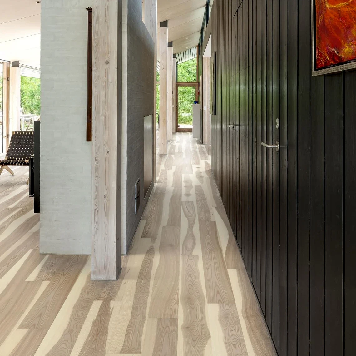 2. Kahrs Ash Skagen: Kahrs Ash Skagen is a stylish engineered wood floor that captures the light, fresh tones of Scandinavian design. Its natural ash grain patterns and pale color variations create a serene and inviting atmosphere, perfect for modern and minimalist interiors. The floor features a durable three-layer construction for stability and long-lasting performance. Finished with a matte lacquer, Kahrs Ash Skagen enhances any space with its subtle elegance and timeless appeal.