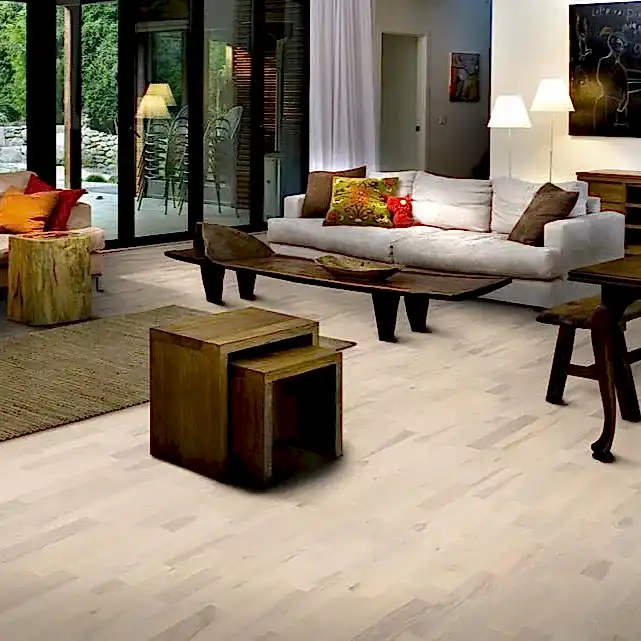 Light, modern, and natural—ash engineered flooring brightens any room with its pale tones and subtle grain patterns.