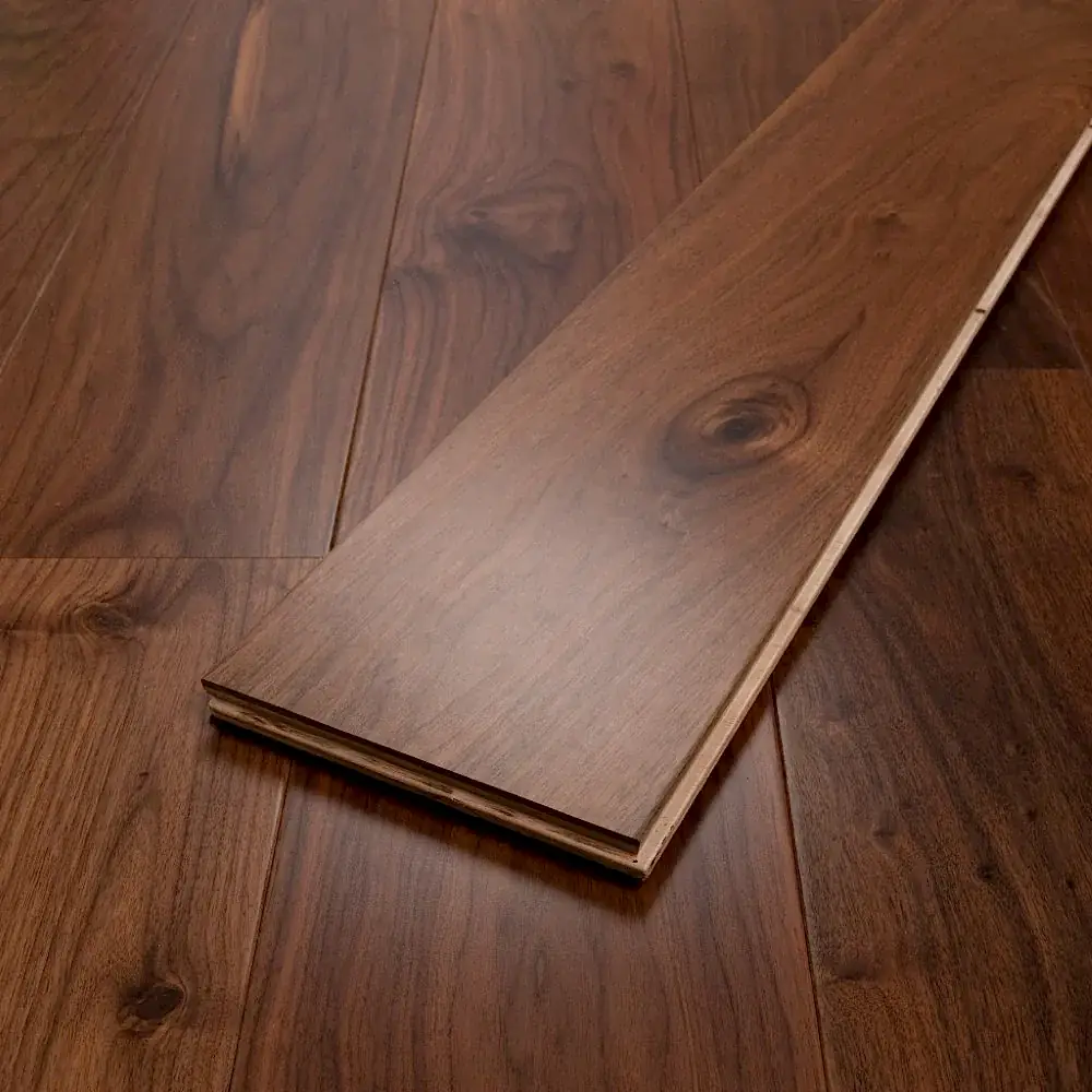 Expertly crafted with engineered walnut, this flooring boasts a durable 20x190x1860 size and UV oil finish for long-lasting beauty. The perfect choice for any space, its rich color and sleek texture add warmth and sophistication to your home. Experience the elegance and quality of engineered walnut.