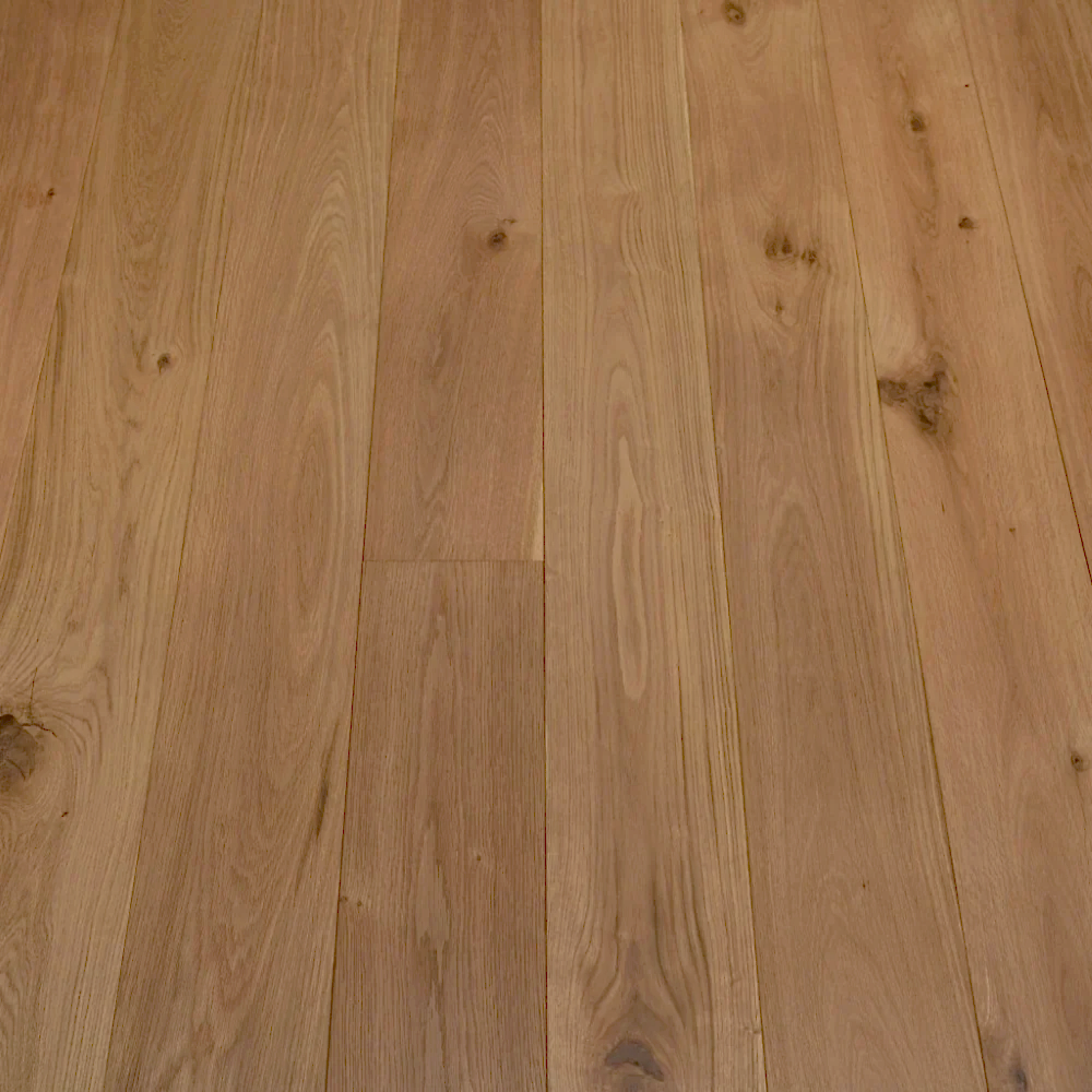 Engineered Click 14mm Oak Natural Brushed and Matt Lacquered flooring offers a timeless oak look with modern practicality. Crafted with a sturdy multi-layer construction, it provides durability and stability, reducing the risk of warping compared to solid wood. The 14mm thickness, including a genuine oak top layer, ensures long-lasting performance while retaining the authentic character of natural wood. The brushed finish enhances the grain, giving it a textured, rustic charm, while the matt lacquer protects the surface without adding unwanted shine, making it easy to maintain. Its click system allows straightforward installation, even for DIY projects. Warm, versatile, and classic, this flooring suits both traditional and contemporary interiors, adding understated elegance and natural beauty to any space.