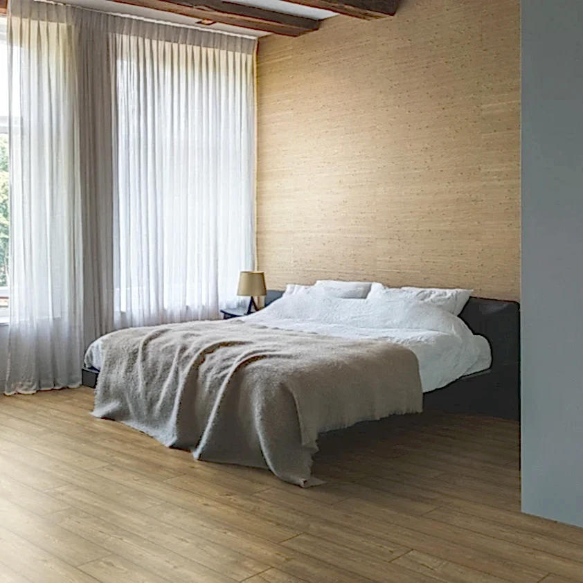 - Design: A large plank, textured finish and beveled edge contributes to the floor's authentic Oak-like appearance.